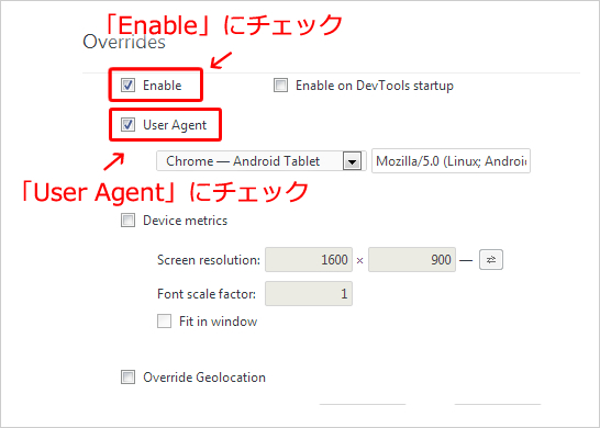 ここで「Enable」と「User Agent」の2つのチェックボックスにチェックをいれます。