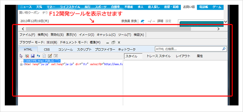 そうすると「F12開発ツール」と呼ばれるウィンドウが表示されます。