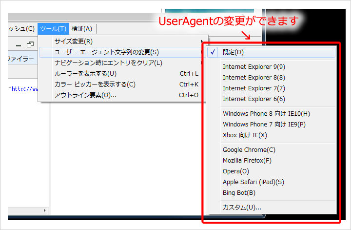最後にInternet ExplorerでのUserAgent変更方法を紹介します。