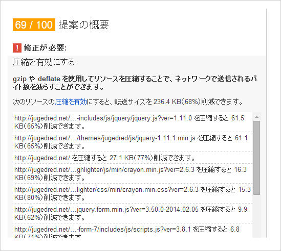 googleが提供している「PageSpeed Insights」というホームページの分析ツールを使ってみたところ、画像のように「圧縮を有効にする」という指摘事項がありました。