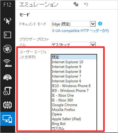 Edgeのユーザーエージェントを変更する