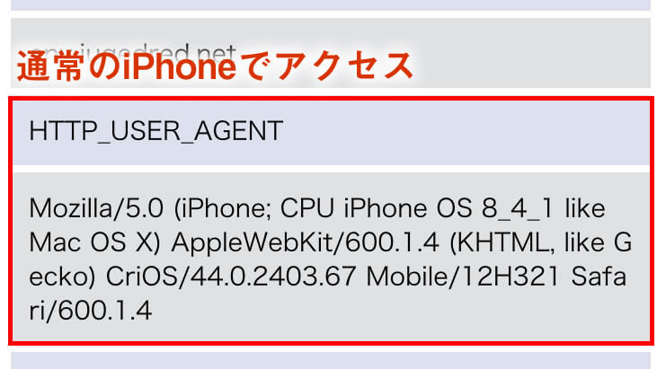 ユーザーエージェントの文字列に「iPhone」が含まれていますね。