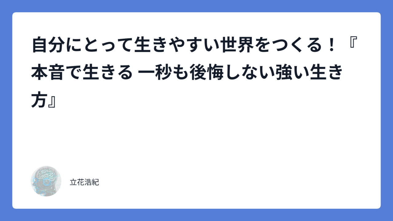さきほど、ホリエモンのように本音で生きていける人は全体の5%でいい。なんて書きましたが、この本を読んだあと、なんとなく自分もその5%になったらいいなと思ってしまいました。それはきっと、この本の中で一貫して書かれている、