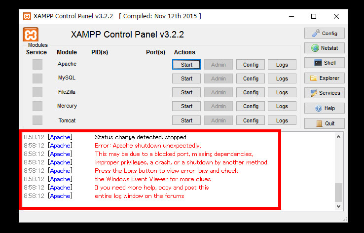 Windows10にアップグレードしたらApache起動しなくなったので対策に乗り出したっていう話