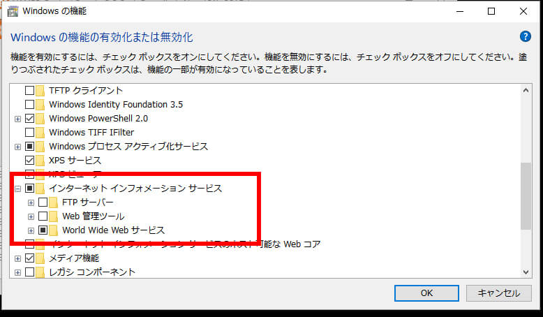 World Wide Webサービスのチェックボックスを解除してOKボタンをクリック!