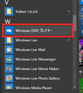 スタートメニューから「すべてのアプリ」をクリックして「Windows DVD プレイヤー」を起動します