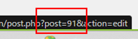 このURLの文字列の「post=XXX」の「XXX」の部分がその固定ページのIDです。上の画像の例では「91」の箇所です。