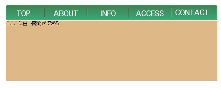 こんな感じです。グローバルナビゲーションと、その下にあるボックス要素の間に白い隙間が発生しています。