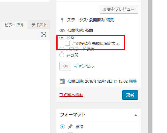 投稿の公開状態を設定する箇所に