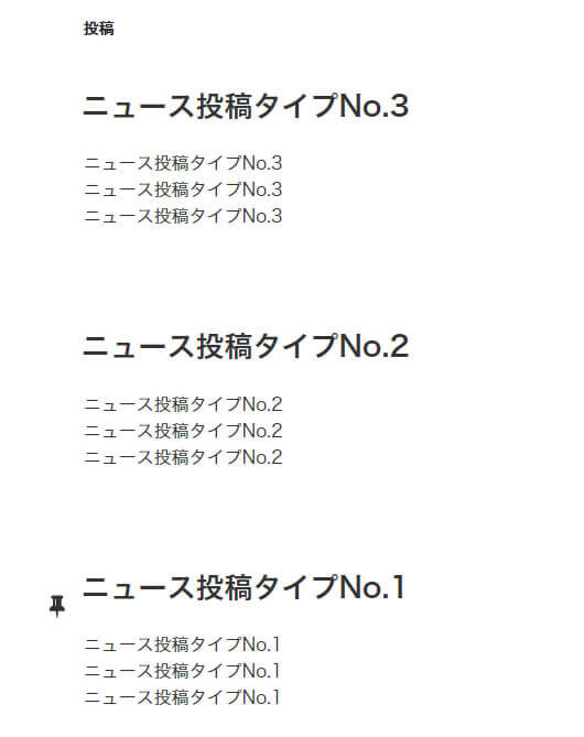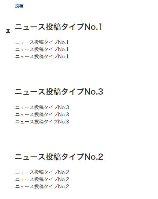 「ニュース投稿タイプNo.1」が一番先頭に固定表示されていることが確認できます。
