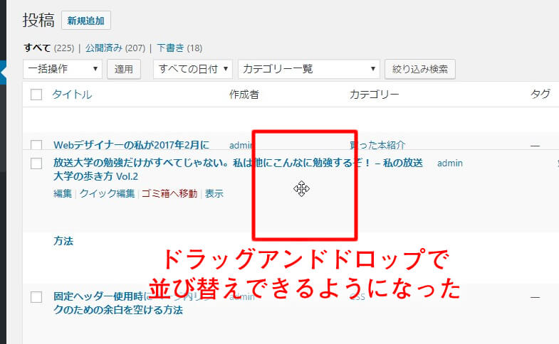 これで記事をドラッグアンドドロップで並び替えることができるようになりました。