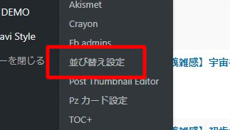 「今すぐインストール」ボタンをクリックして、インストールを完了させます。その後、「有効化」ボタンを押すと、管理画面のメニューから「並び替え設定」というメニューが追加されますので、クリックしてプラグインの設定をしましょう。