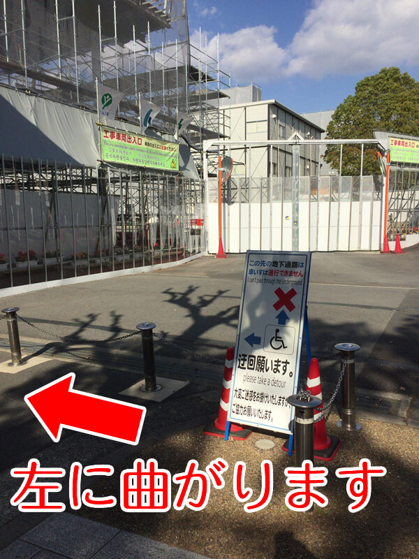 少しわかりにくいのですが、工事中で迂回するという看板が立っているので、少し細い道に入ることになるのですが、左に曲がります。