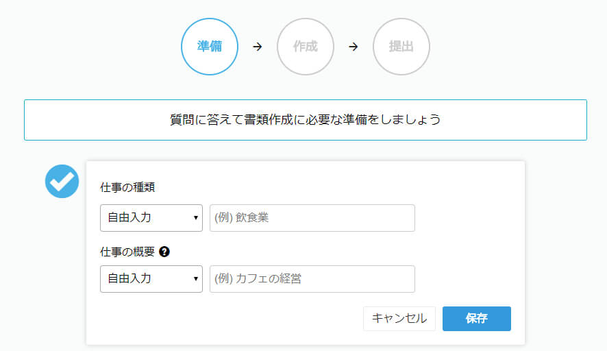 開業届だけでなく、青色申告承認申請書も自動で作ってくれます。設問に答えていくだけで簡単に作成!