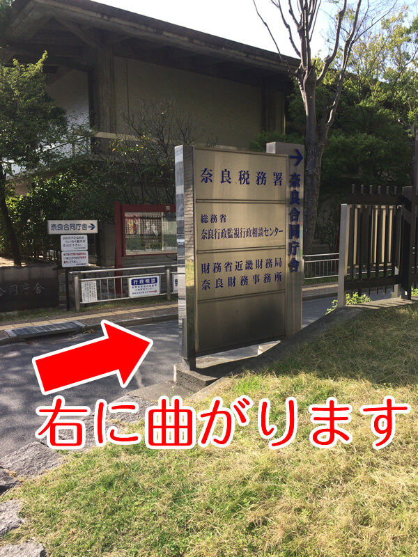 奈良税務署の看板が見えてきます。奈良合同庁舎という建物にあるようですね。