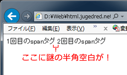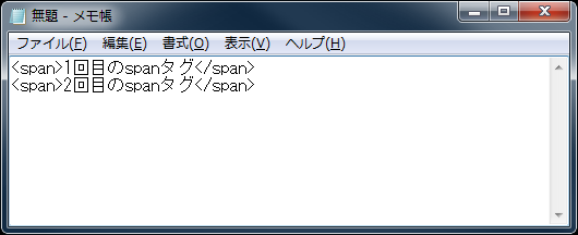 さきほどの例ではspanタグを左から右へ向かって2つ書きました。