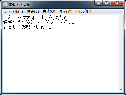 「こんにちは」から始まり、「私は犬です。」と左から右に向かって書いています。