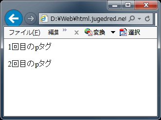 ここで再びpタグの出番です。でもこんどはpタグを2回使ったサンプルを取り上げてみます。