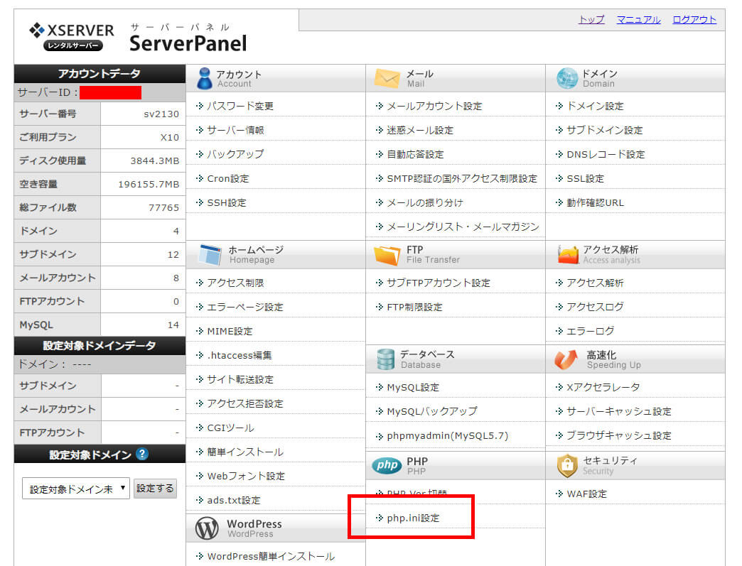 レンタルサーバーの「エックスサーバー」ではサーバーの管理画面で「php.ini」ファイルのカスタマイズが可能です。