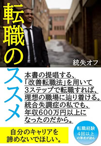 | タイトル | 転職のススメー統合失調症の私でも年収600万円以上になった「改善転職法」。 |