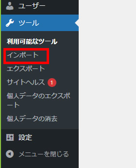 次に「ツール」⇒「インポート」からWordPressの項目を探して「インポーターの実行」メニューをクリックします。