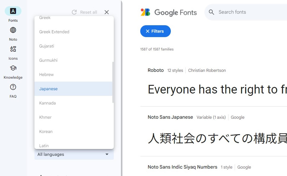 まずはGoogleフォントのページにブラウザでアクセスします。