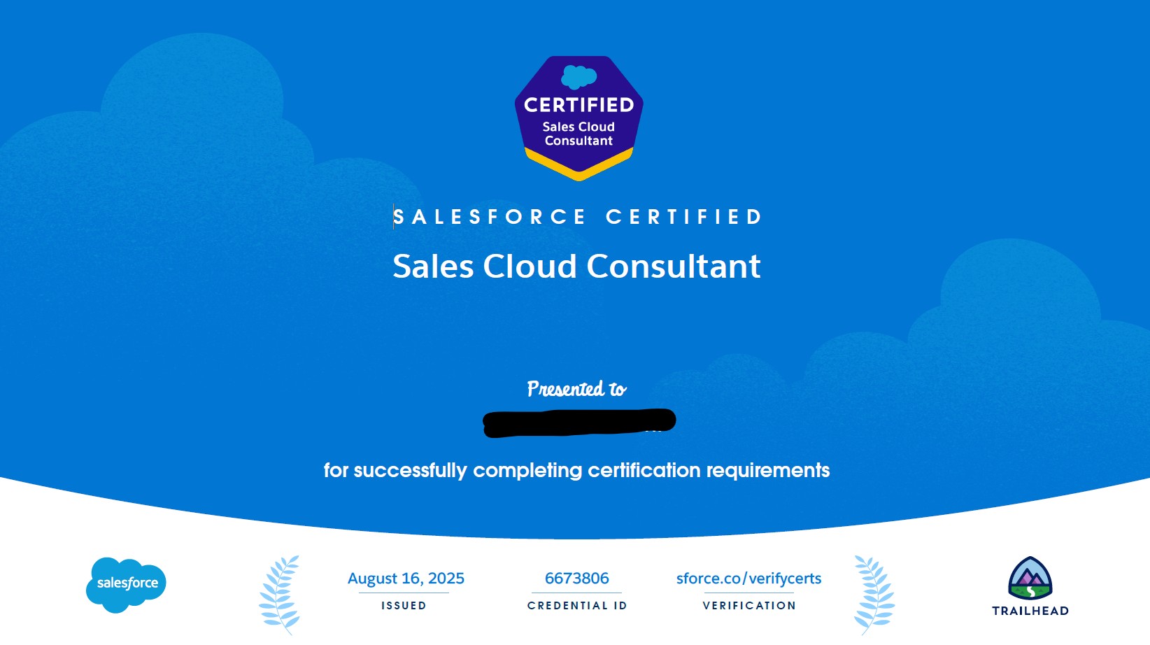 認定Platformアプリケーションビルダーに引き続き、認定Sales Cloudコンサルタント試験も一発で合格できました。これで認定資格が3つになりました。