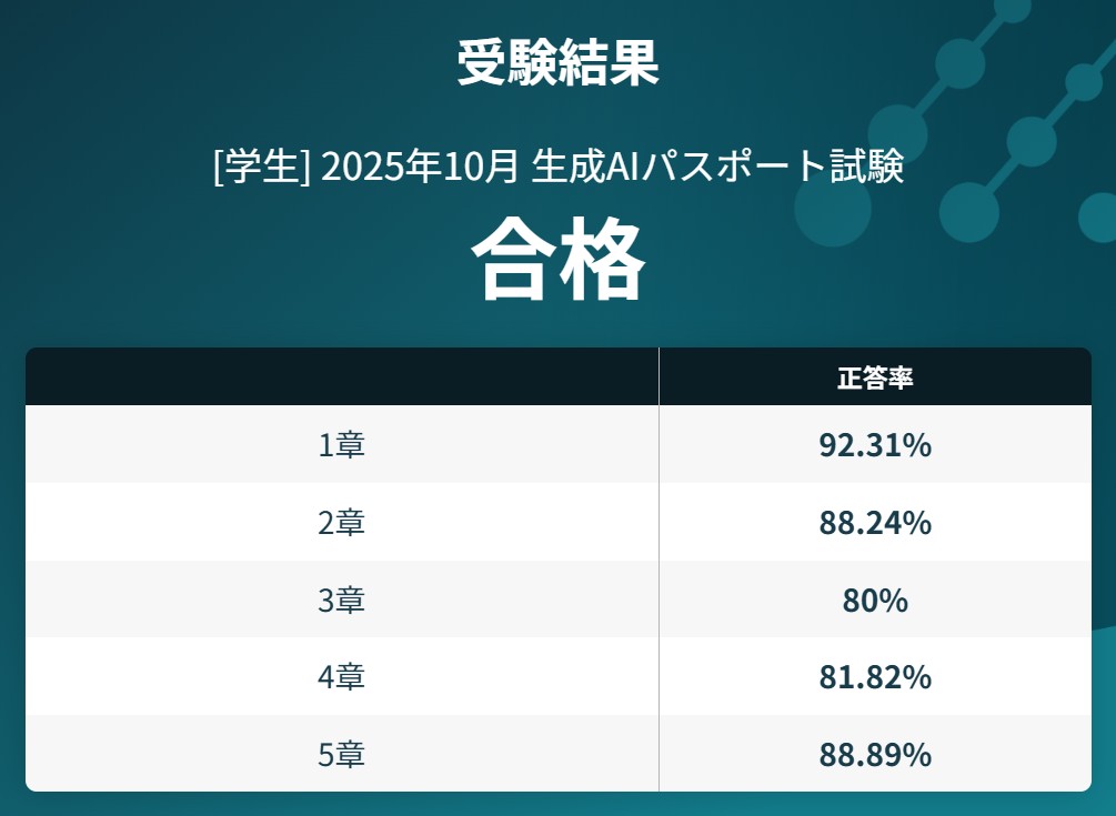 2025年10月に受験した生成AIパスポート試験に無事合格しました。