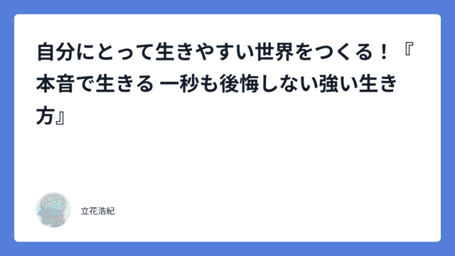 自分にとって生きやすい世界をつくる!『本音で生きる 一秒も後悔しない強い生き方』